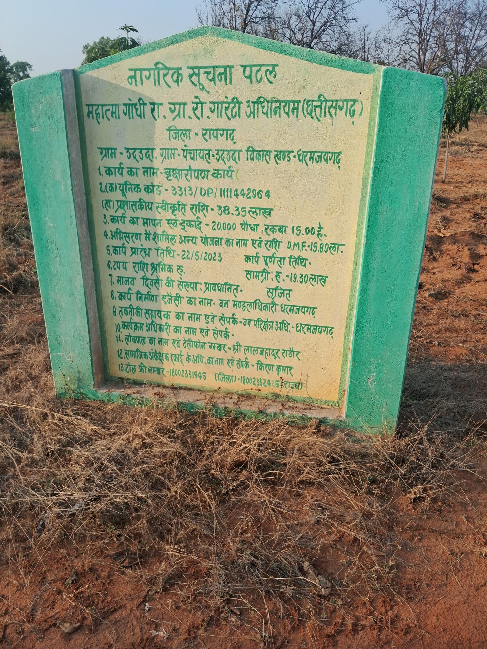 रायगढ़, छत्तीसगढ़: महात्मा गांधी राष्ट्रीय ग्रामीण रोजगार गारंटी अधिनियम (मनरेगा) के तहत रायगढ़ जिले की उदुदा ग्राम पंचायत में वृक्षारोपण योजना के नाम पर बड़ा खेल सामने आ सकता है। सरकारी दस्तावेजों और मौके की हकीकत में बड़ा अंतर दिख रहा है, जिससे भारी वित्तीय अनियमितता की आशंका पैदा हो गई है। से अधिक पौधे लग चुके हैं,” वन परिक्षेत्र अधिकारी का दावा है। लेकिन सरकारी पोर्टल, सूचना पट्ट और जमीनी हकीकत कुछ और ही कहानी बयां कर रहे हैं। यही नहीं यह योजना अपने मूल उद्देश्य से भी भटकता नजर आ रहा है , मनरेगा का मुख्य उद्देश्य ग्रामीणों को रोजगार उपलब्ध कराना है , लेकिन पौधरोपण के इस काम में लगभग 2 साल में सिर्फ 2980 मानव दिवस का काम दिखाया गया है , जबकि वास्तविक मानवदिवस 9000 होना था आंकड़ों की इस बाजीगरी ने पौधरोपण कार्य की पूरी प्रक्रिया को ही संदिग्ध बना दिया है !