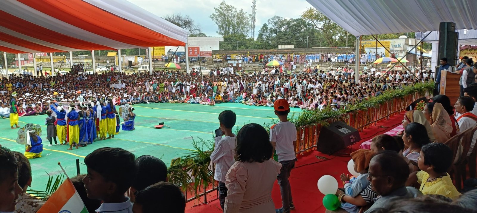 धरमजयगढ़। – स्वतंत्रता दिवस जैसे गौरवपूर्ण अवसर पर जहां बच्चों को सम्मान और सुविधा मिलनी चाहिए थी, वहां वे अव्यवस्था की मार झेलते नजर आए। 15 अगस्त के कार्यक्रम में धरमजयगढ़ के मंच पर नेताओं और
