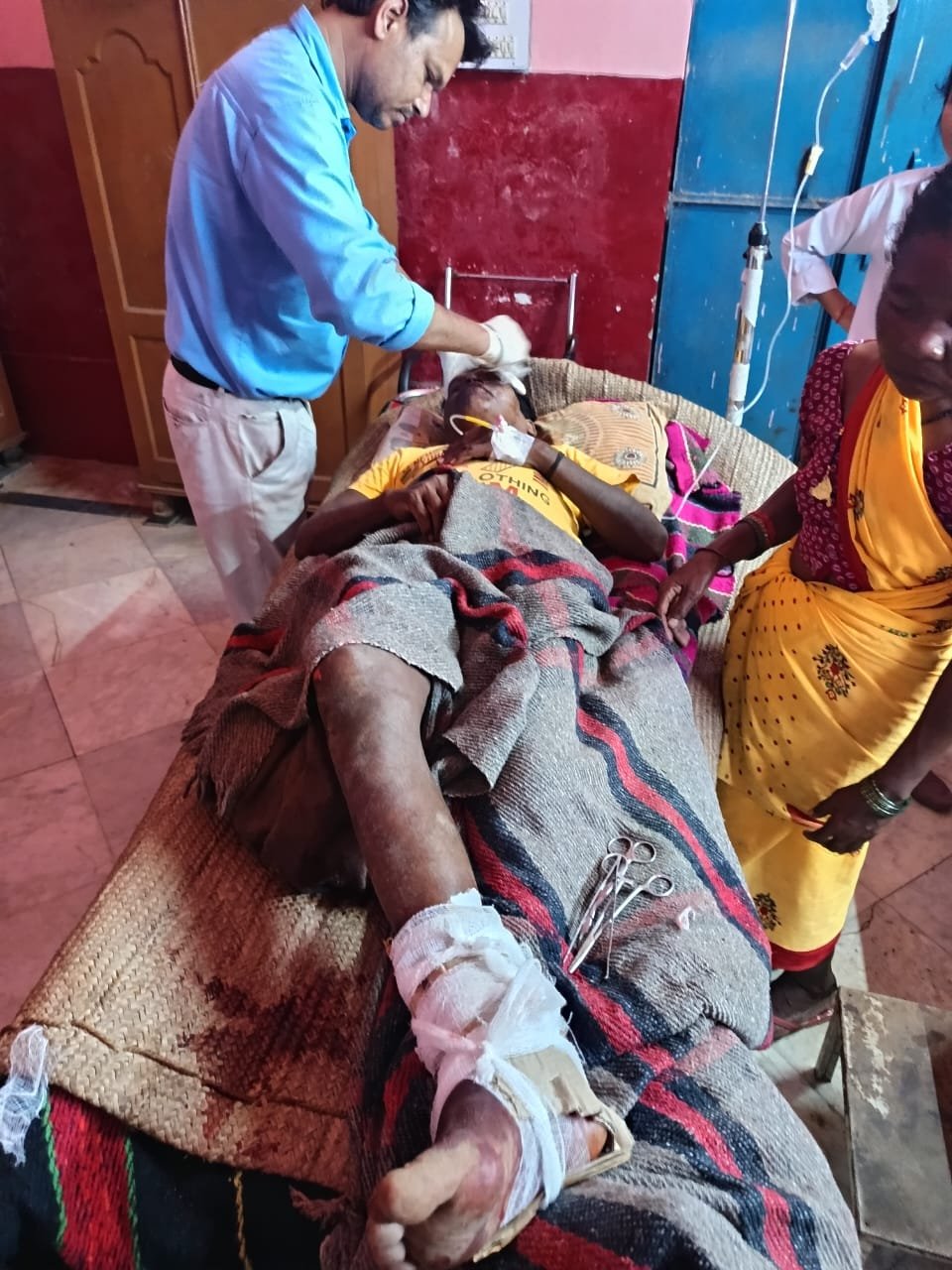 рдЧреНрд░рд╛рдореАрдгреЛрдВ рдХреА рдорджрдж рд╕реЗ рдШрд╛рдпрд▓ рдХреЛ рддрддреНрдХрд╛рд▓ рдзрд░рдордЬрдпрдЧреЭ рдЕрд╕реНрдкрддрд╛рд▓ рд▓рд╛рдпрд╛ рдЧрдпрд╛, рдЬрд╣рд╛рдБ рдкреНрд░рд╛рдердорд┐рдХ рдЙрдкрдЪрд╛рд░ рдХреЗ рдмрд╛рдж рдЙрд╕рдХреА рдЧрдВрднреАрд░ рд╕реНрдерд┐рддрд┐ рдХреЛ рджреЗрдЦрддреЗ рд╣реБрдП рд░рд╛рдпрдЧреЭ рдЬрд┐рд▓рд╛ рдЕрд╕реНрдкрддрд╛рд▓ рд░реЗрдлрд░ рдХрд┐рдпрд╛ рдЧрдпрд╛ рд╣реИред